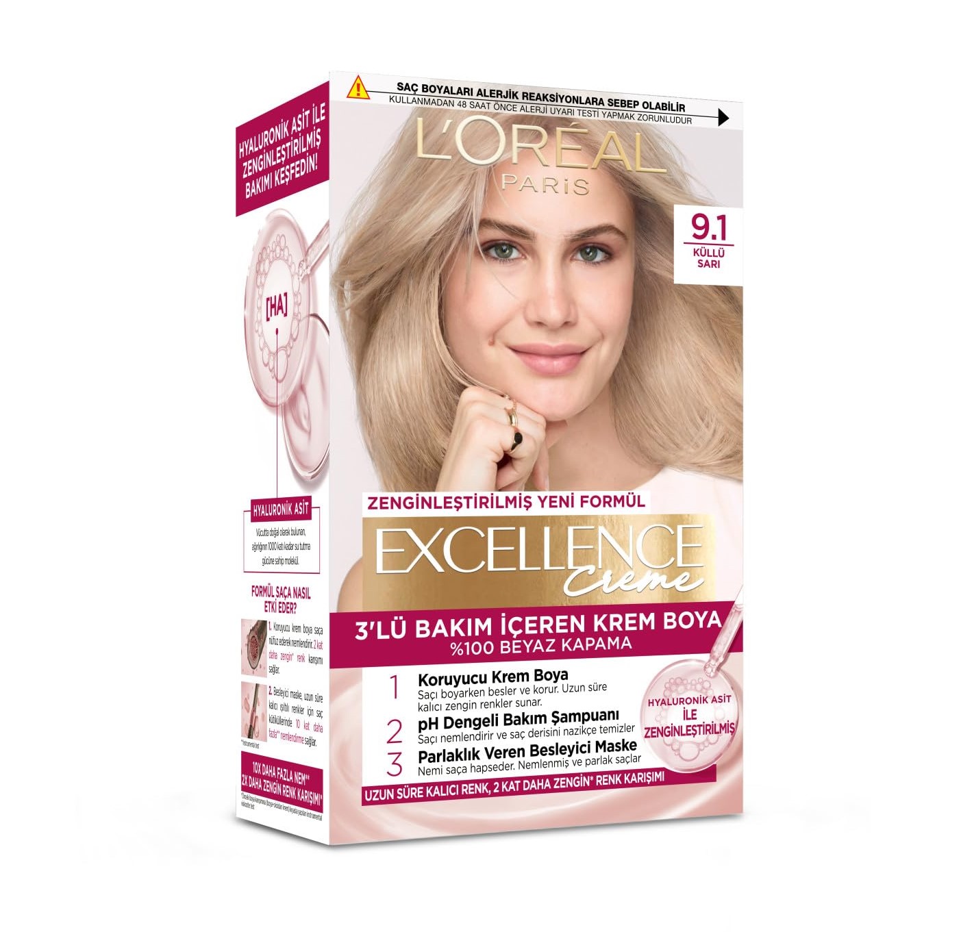 کیت رنگ موی لورال پاریس مدل Excellence شماره 9.1 بلوند دودی