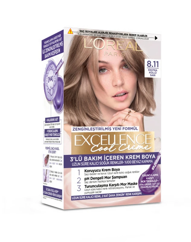 کیت رنگ موی لورال پاریس مدل Excellence شماره 8.11 بلوند تیره دودی