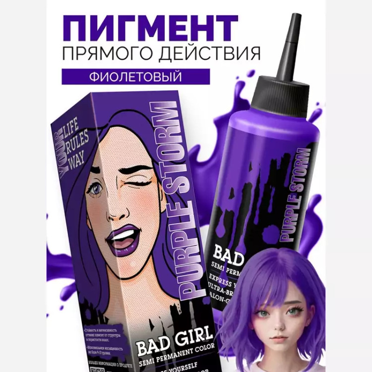 شامپو رنگ بد گرل Bad Girl رنگ بنفش مدل Purple Storm حجم 150 میل