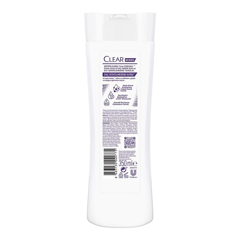 شامپو ضد شوره و ضد ریزش موی زنانه کلییر 350 میلی لیترsac dokulmesine
