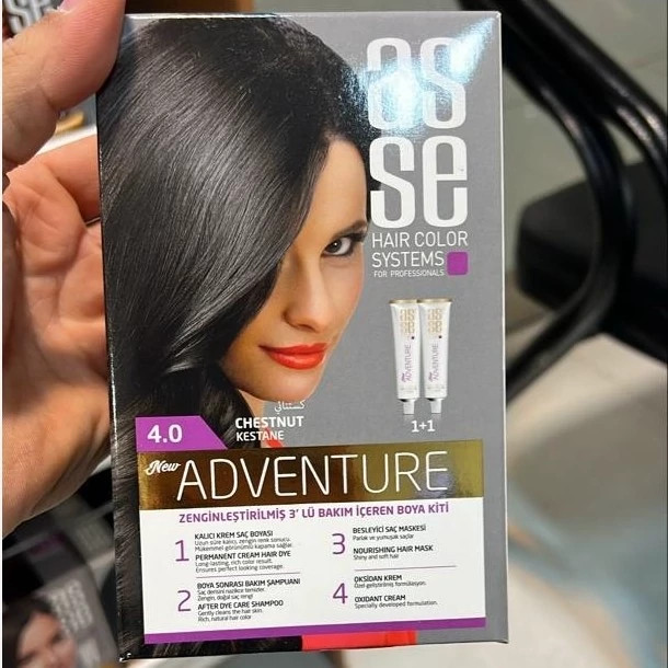 رنگ مو آسه asse سری adventur رنگ chestunt شماره 4.0حاوی دو تیوپ حجم 50 میل