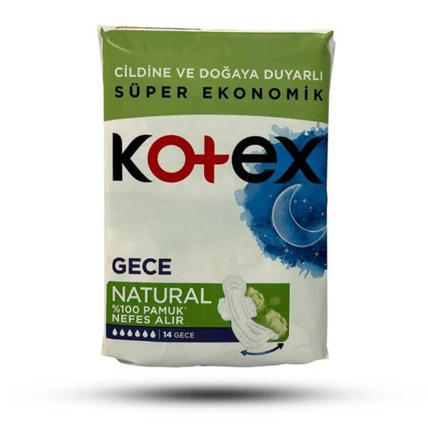نوار بهداشتی کوتکس KOTEX ویژه شب GECE مدل NATURAL نچرال، تهیه شده از پنبه اورگانیک با تنفس پذیری 100% و قدرت جذب بی نظیر؛ خوابی آرام و مطمعن برای شما به ارمغان می آورد.