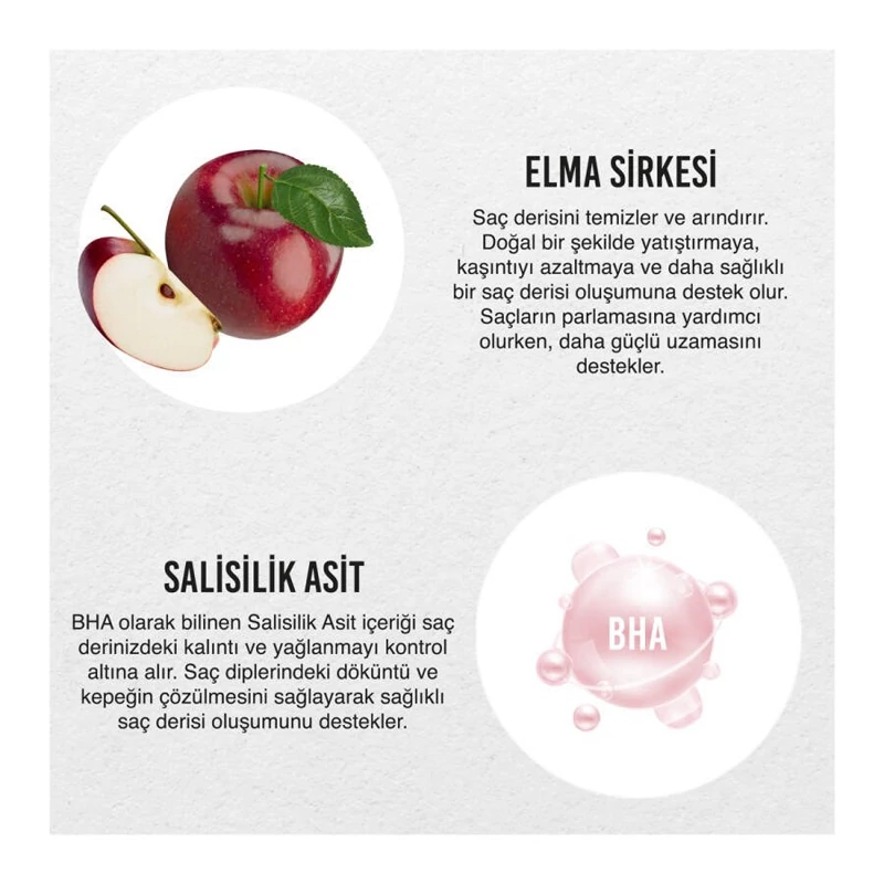 سرکه سیب: برای پاکسازی عمیق، کنترل چربی و بهبود جریان خون در پوست سر.