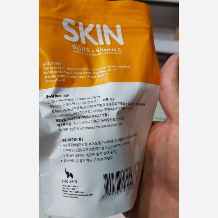 🔵صابون کپسولی گلوتا+ ویتامین C کره ای 📌قیمت دونه ای: 340000تومان 🔵صابون کپسولی گلوتا تیون فیل اسکین کره ای با 39 درصد ویتامین C 🔵سفید کننده و روشن کننده پوست 🔵درمان لک و تیرگی بدن 🔵کنترل کننده ترشح چربی پوست 🔵دارای ویتامین های E,C,B 🔵کلاژن ساز و لیفت کننده صورت 🔵مناسب شستشوی پوست صورت و بدن 🔵حاوي 39درصد ویتامین C 🔵105 g 🔵بسته 10 عددی 🔵این محصول یک صابون کپسولی 10 عددی از برند "فیل اسکین" (PHIL SKIN) است که برای روشن کردن پوست و کاهش لکههای تیره فرموله شده است. 🔵ترکیبات اصلی: این صابون حاوی گلوتا (Gluta) برای روشن کردن پوست و ویتامین C برای خواص آنتیاکسیدانی و بهبود ظاهر پوست است. 🟩نحوه استفاده: صابون را روی پوست مرطوب در حمام یا زیر دوش با استفاده از لیف، کیسه یا دست خود بمالید تا کف غلیظی ایجاد شود. سپس کف را به آرامی و با حرکات دایرهای روی پوست ماساژ دهید. 🔵ویژگیها: این صابون به طور عمیق پوست را تمیز کرده، لکهها را کاهش داده و به پوست درخشندگی و ظاهری سالم میبخشد. همچنین میتواند به کاهش قرمزی و درمان کلف و لکههای ناشی از افزایش سن کمک کند. 🔵مناسب برای: این محصول برای انواع پوست مناسب است.