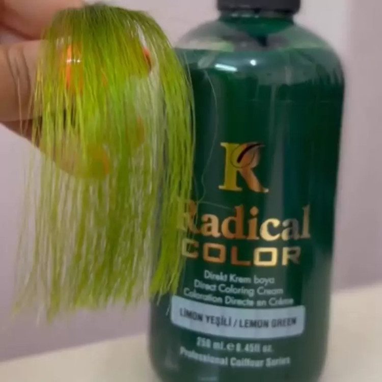 شامپو رنگ مو رادیکال کالر رنگ سبز لیمویی Lime Green حجم 250 میلی لیتر.