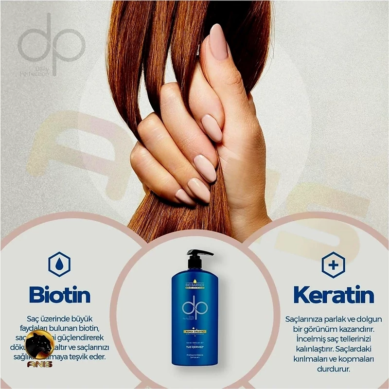 🔵شامپو bio barrier ضد شوره دپی dp آبی حاوی کراتین و بیوتین