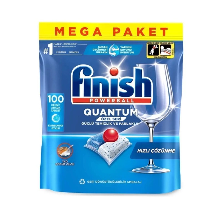 قرص کوانتوم فینیش 100 عددی ، با قدرت شویندگی بالای خود، به ظروف شما جلا میدهد. طریقه مصرف : یک عدد کپسول فینیش را در محفظه ماشین ظرفشویی خود قرار بدهید و ماشین را با تنظیمات مناسب راه اندازی کنید. هر کپسول برای یک بار شست و شو استفاده شود. به جلد پلاستیکی کپسول آسیبی نرسانید. نکات مهم استفاده از ماشین ظرفشویی: سختی آب در ایران بسیار بالاست، بنابراین در دستگاه خود همیشه از نمک استفاده کنید. بهتر است از دستگاه خود حداقل هفته ای یک یا دو بار استفاده کنید. در غیر اینصورت، آب و نمک در مخزن دستگاه باقی مانده و باعث تخریب و زنگ زدن کابین و از کار افتادن دستگاه میشوند. جرمگیری برای سلامت دستگاه بسیار مهم است، حتما سعی کنید هر سه ماه یکبار از جرمگیر برای دستگاه خود استفاده کنید. برند محصول: برند فینیش که یک برند آمریکایی و زیر مجموعه شرکت رکیت است، در سال 1953 به هدف تولید محصولات شوینده ماشین ظرفشویی معرفی شد
