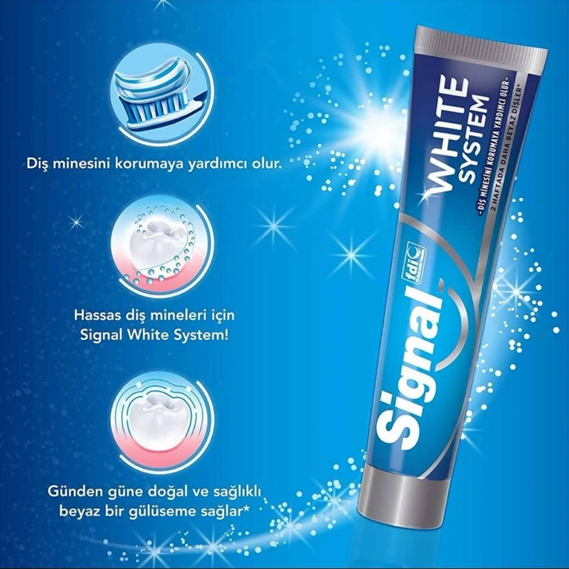 خمیر دندان سیگنال سری White Sistem مدل diş minesini korumaya yardimci olur با خاصیت سفید کنندگی قوی یکی از بهترین خمیردندان ها برای داشتن دندان هایی قوی با مینای سالم است