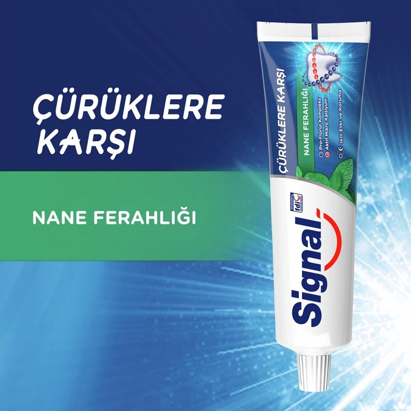اگر به سلامت دندانهای خود اهمیت میدهید، خمیردندان ضد پوسیدگی سیگنال با عصاره طبیعی نعناع بهترین انتخاب است. این محصول با فرمول تخصصی "çürükler için" که در زبان ترکی به معنای "مناسب برای پوسیدگیها"ست، طراحی شده تا لایهای محافظ روی مینای دندان ایجاد کند و از بروز پوسیدگی جلوگیری کند. بهعلاوه، عصاره نعناع بهکاررفته در آن طراوتی بینظیر به دهان میبخشد و احساس تازگی و اعتماد بهنفس را به همراه دارد.