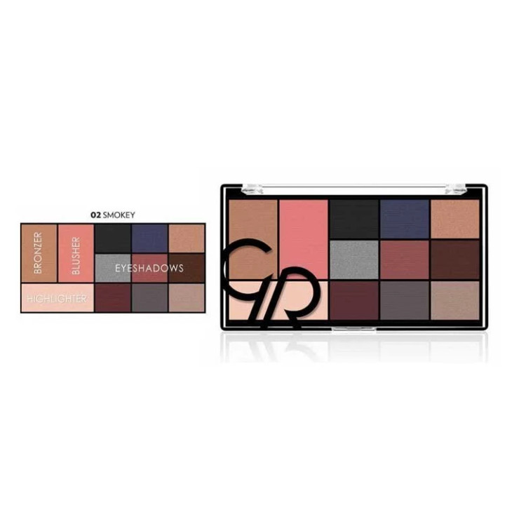 پالت آرایش صورت و چشم گلدن رز مدل سیتی استایل اسموکی کد 02