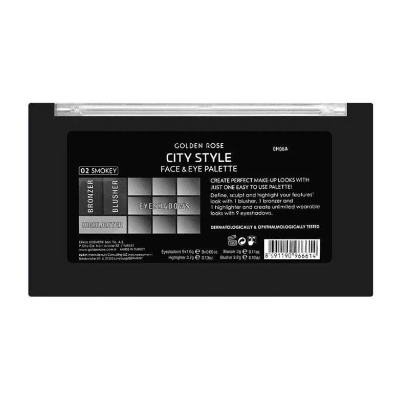 پالت آرایش صورت و چشم گلدن رز مدل سیتی استایل اسموکی کد 02