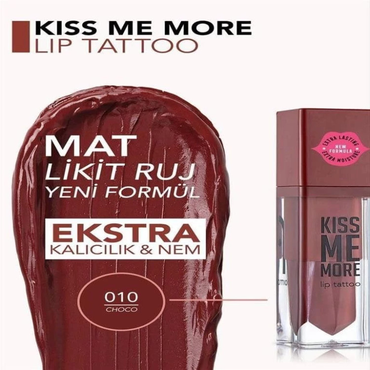 Kiss Me More Lip Tattoo فلورمار یک رژ لب مایع با پوشش کامل و ماندگاری طولانی است که بافتی سبک و مخملی روی لبها ایجاد میکند. این محصول به دلیل فرمولاسیون خاص خود، بدون ایجاد خشکی یا سنگینی، رنگی پررنگ و جذاب را برای ساعتها حفظ میکند.