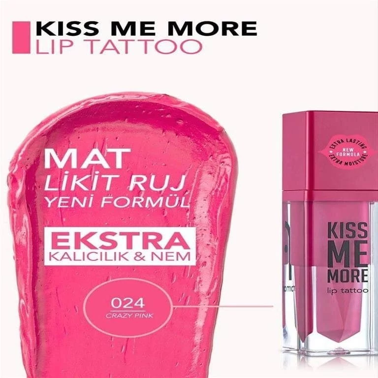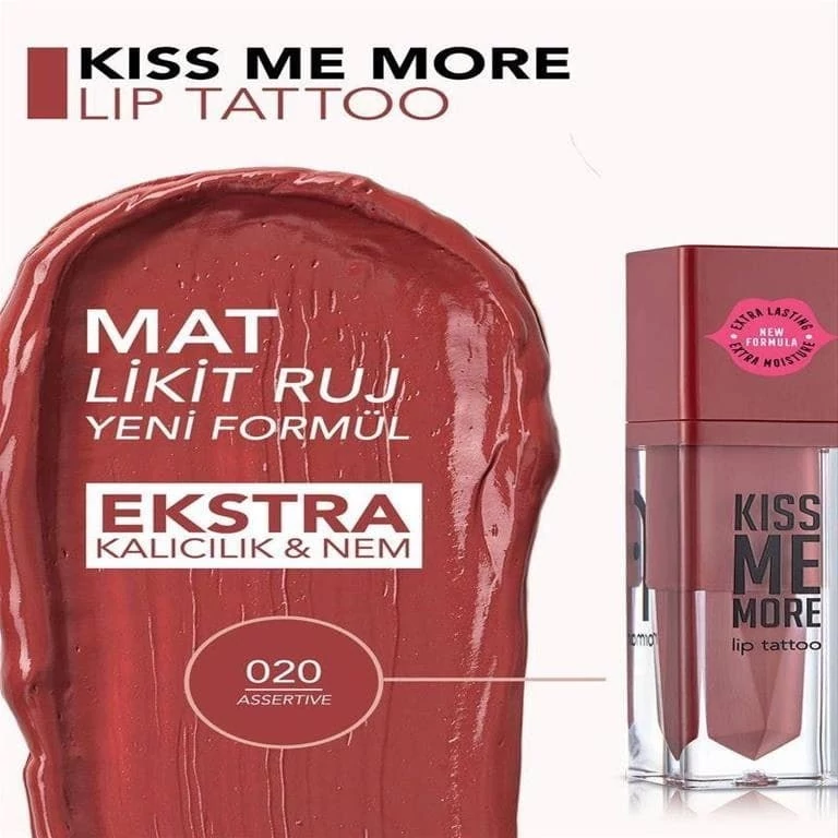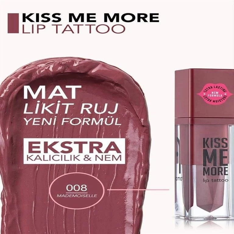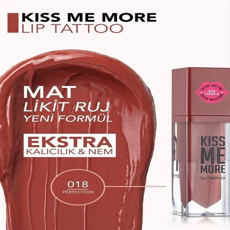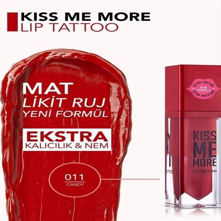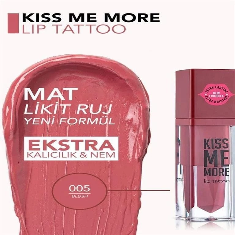 Kiss Me More Lip Tattoo فلورمار یک رژ لب مایع با پوشش کامل و ماندگاری طولانی است که بافتی سبک و مخملی روی لبها ایجاد میکند. این محصول به دلیل فرمولاسیون خاص خود، بدون ایجاد خشکی یا سنگینی، رنگی پررنگ و جذاب را برای ساعتها حفظ میکند.
