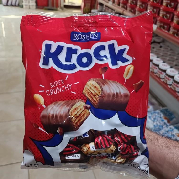 شکلات روشن کراک با مغز کرم بادام زمینی Roshen Krock بسته نیم کیلویی