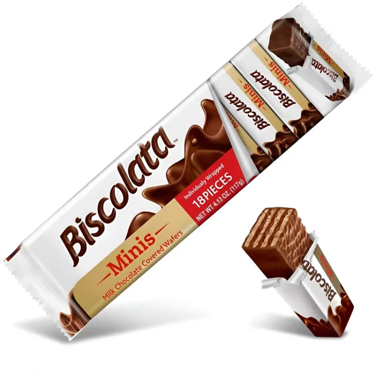 ویفر بیسکولاتا مینیس با روکش شکلات شیری و کرم فندقی Biscolata Minis بسته 18 عددی وزن 117 گرم