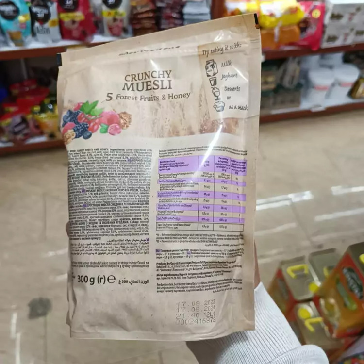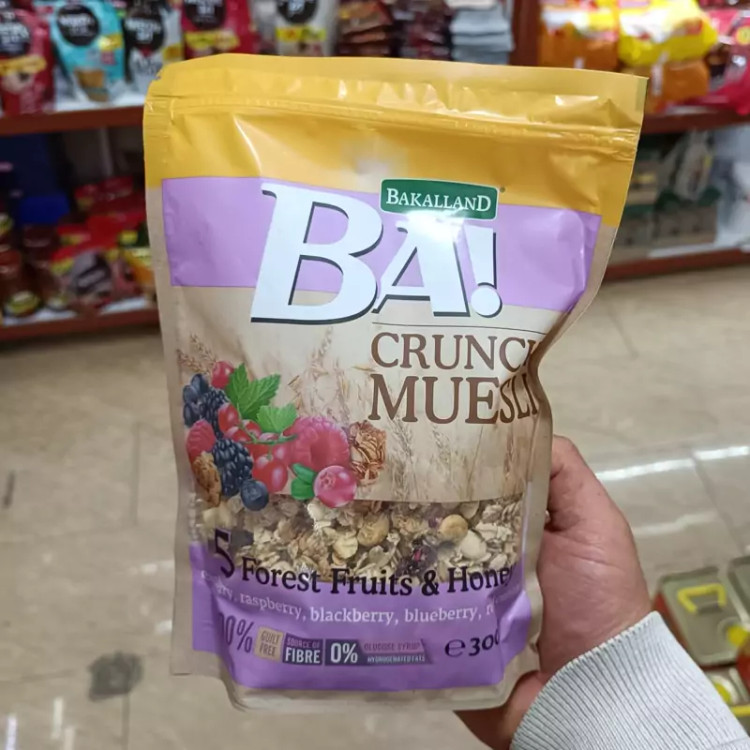 غلات صبحانه کرانچی موسلی باکالند BAKALLAND حاوی میوه های خشک جنگلی و عسل وزن 300 گرم