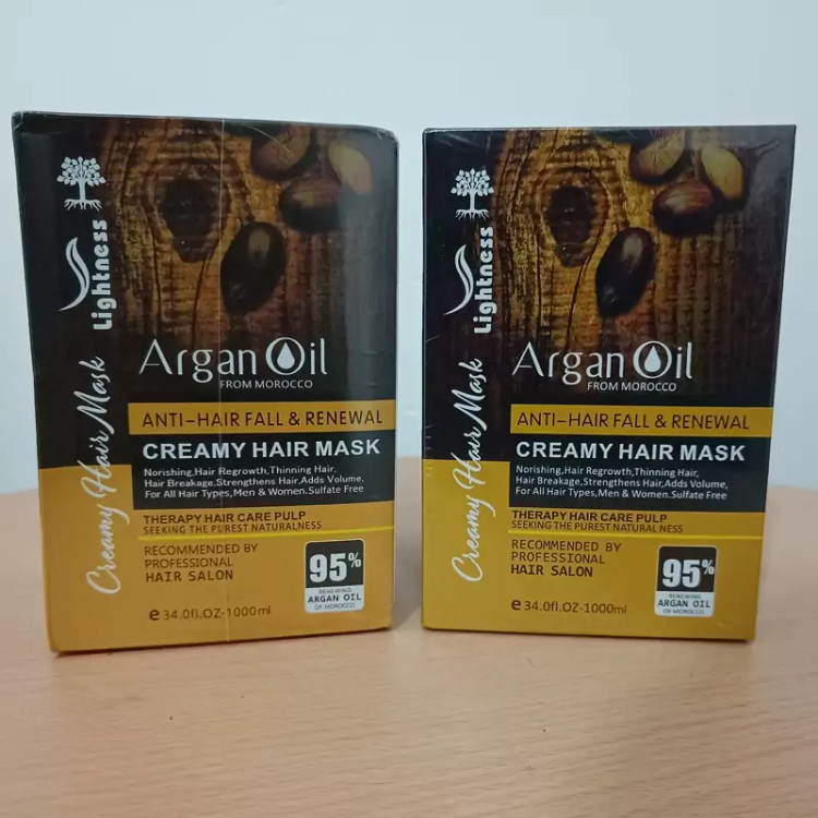 ماسک مو لایتنس مدل Argan oil حجم 1000 میلی لیتر اور جینال و اصلی هولوگرام دار مناسب موهای کراتینه