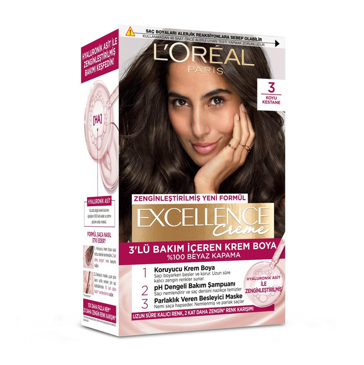 کیت رنگ موی لورال پاریس مدل Excellence شماره 3 قهوه ای خیلی تیره