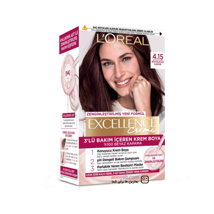 رنگ موی شماره 4.15 لورال رنگ قهوه ای با انعکاس دودی سری Excellence