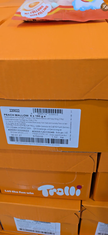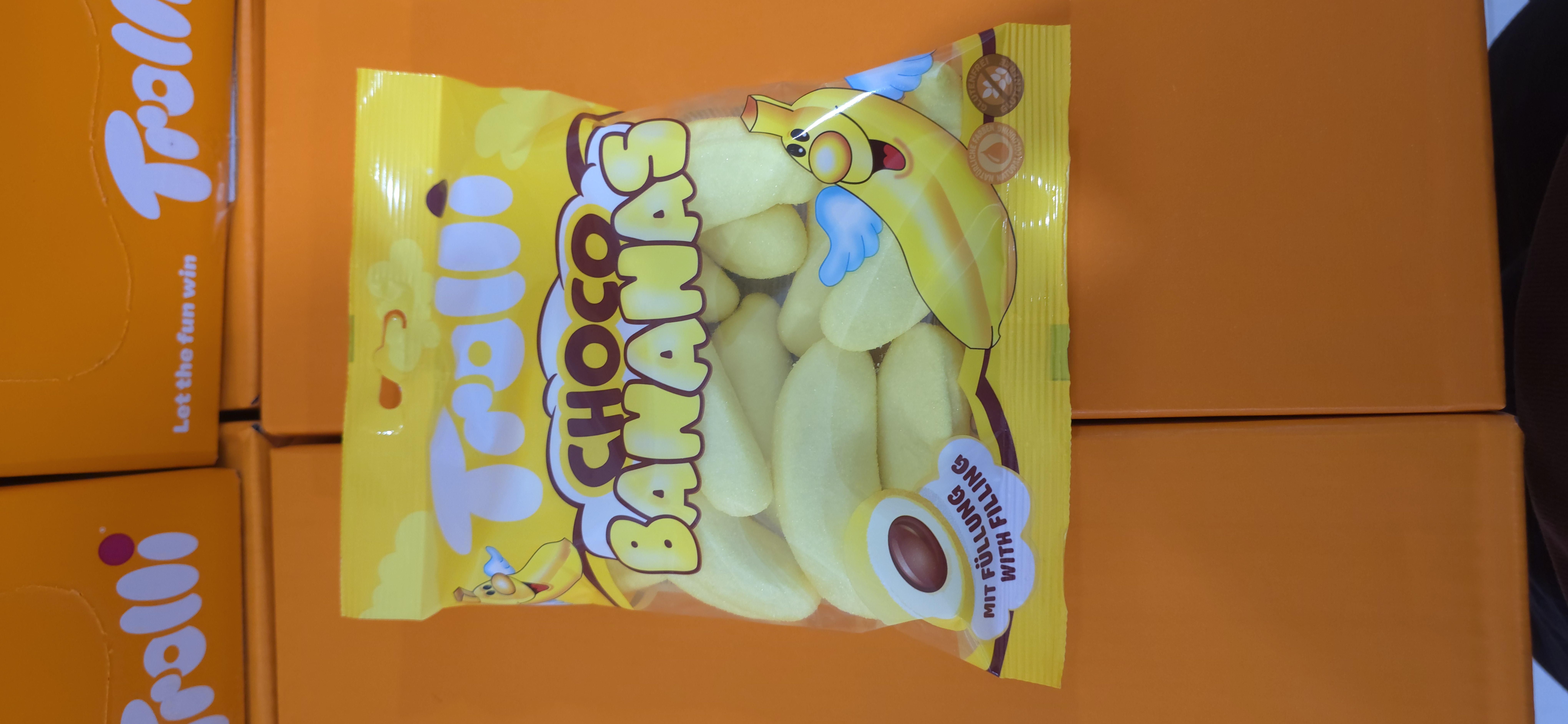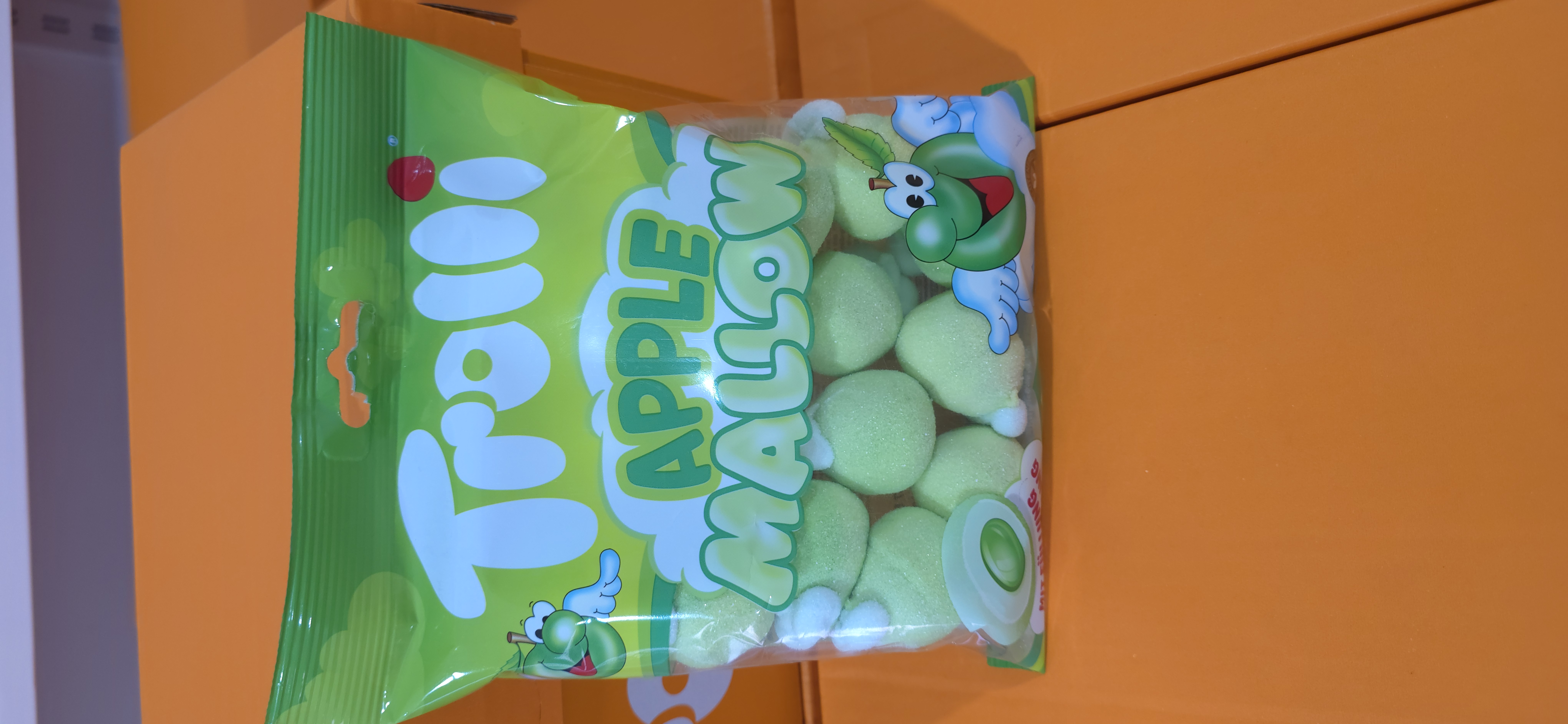 مارشمالو مغزدار در۴طرح (سیب. هلو. میکس میوه.موز) 150گرمی ترولی آلمان Trolliباکس 8عددی