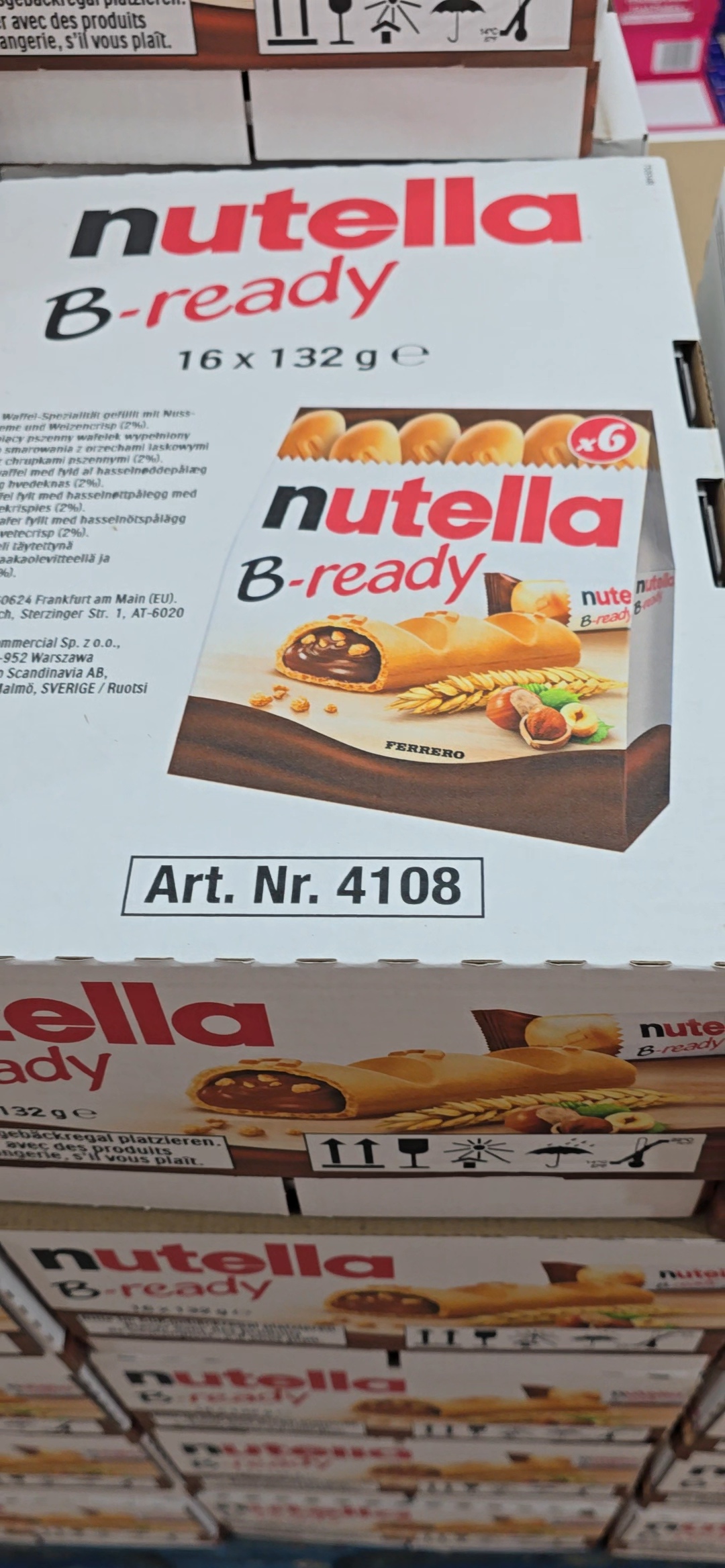 بیسکوییت مغز شکلاتی بی ردی نوتلا Nutella B-ready بسته 6 عددی وزن 132 گرم باکس 16عددی