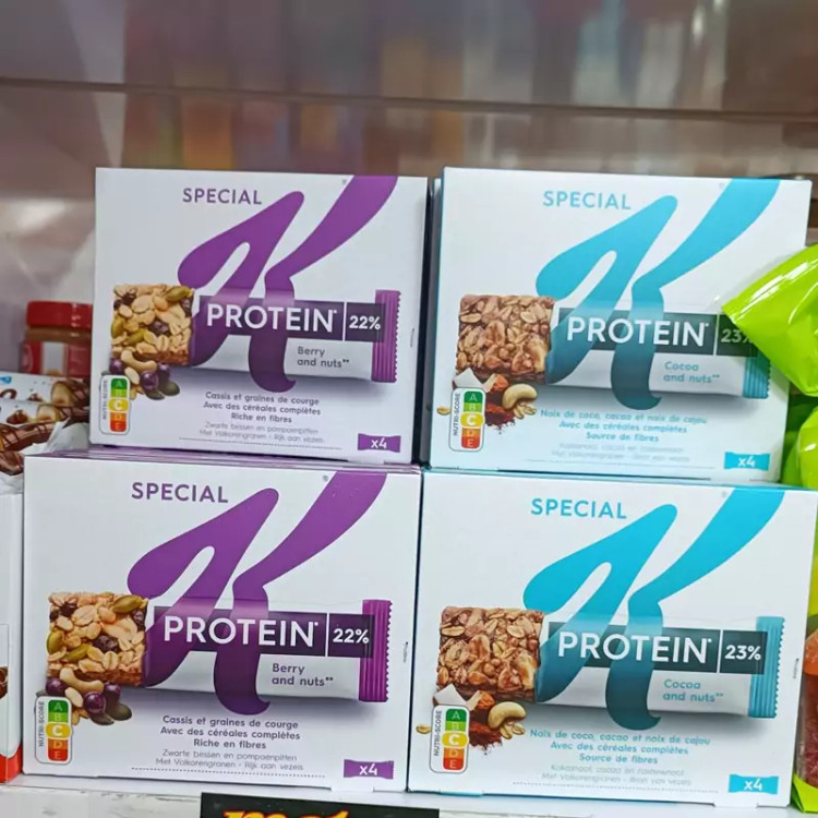 پروتئین بارها با طعم های مختلفی تولید می شوند و به دلیل خاصیت زیادی که دارند، بسیار پرفروش و مورد استقبال قرار دارند. یکی از پروتئین بارهای خوشمزه، پروتئین بار اسپشیال کی با طعم بری و مغزیجات است که حاوی 23 درصد پروتئین است. می توانید این خوراکی پرانرژی و مقوی را در میان وعده ها و یا در وعده های قبل و بعد تمرین خود نوش جان کنید.