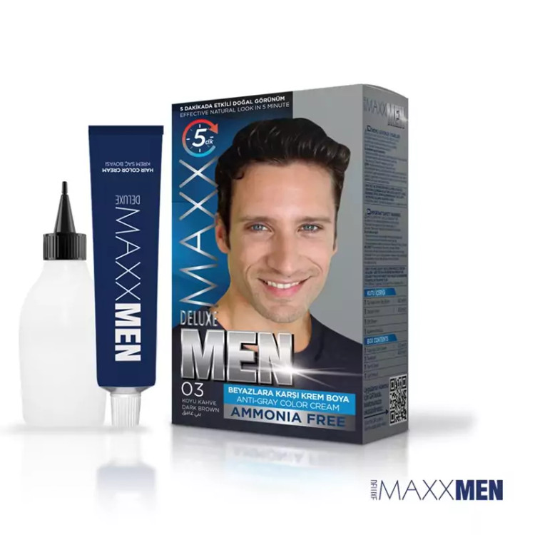 کیت رنگ موی مردانه مکس دلوکس شماره 03 قهوه ای تیره محصول ترکیه Maxx Deluxe Men