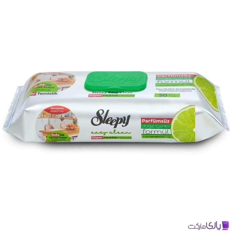 دستمال مرطوب اسلیپی Sleepy مخصوص سطوح آشپزخانه حاوی روغن لیمو ترش بسته 50 عددی