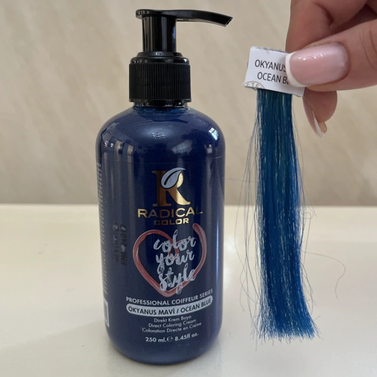 شامپو رنگ مو رادیکال کالر رنگ آبی اقیانوسیOcean Blue حجم250 میلی لیتر.