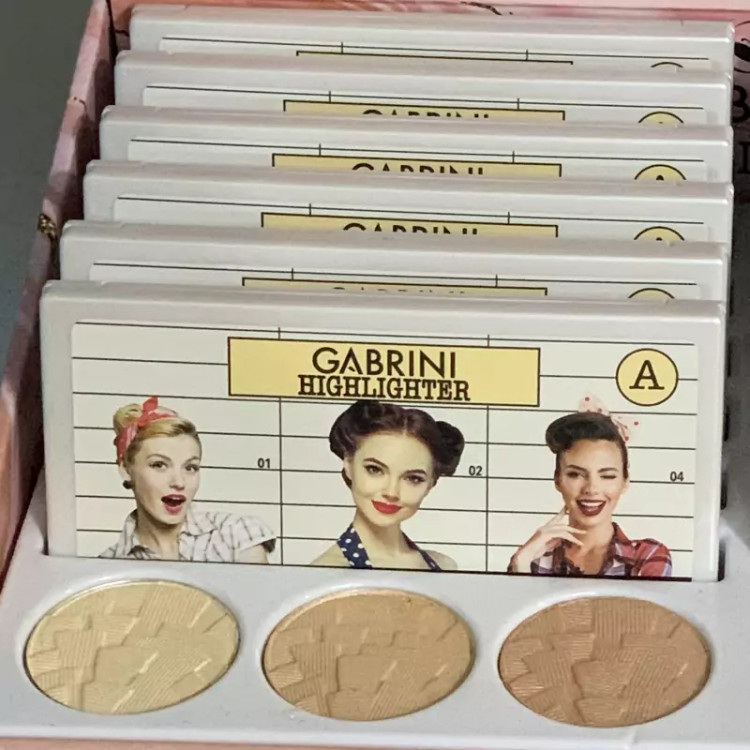 پالت هایلایتر گابرینی فرمولاسیونی نرم و براق دارد که حالتی ابریشمی و بافتی روشن روی پوست صورت ایجاد می کند. می توانید از این محصول به تنهایی یا روی آرایش استفاده کنید؛ همچنین می توانید با ترکیب رنگ های این پالت، به رنگ و نتیجه دلخواه برسید. در این پالت جذاب یک آینه نیز می باشد که کار کردن با این پالت را لذت بخشتر می کند. با خرید این پالت در واقع سه رنگ جذاب و کاربردی هایلایتر را خواهید داشت. پالت های هایلایتر گابرینی دارای بسته بندی هایی زیبا با عکس های وینتیج است که بسیار مناسب هدیه دادن می باشند و قیمت آن نیز مناسب میباشد و اغلب مردم میتوانند از آن استفاده کنند و مقرون به صرفه میباشد. این هایلایتر در دوسری وجود دارند سری Aو B که نوع فوق که مدل Aمیباشد رنگ روشن تری دارد.