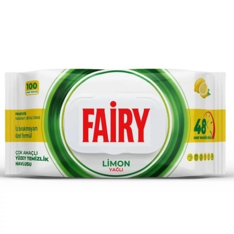 دستمال مرطوب پاک کننده سطوح فیری رایحه لیمو بسته 100 عددی